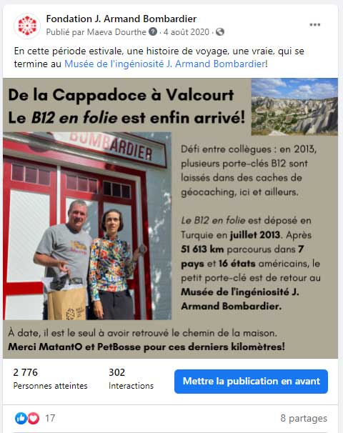 Saviez-vous qu’un petit porte-clés à l’effigie du B-12 a parcouru 51 613 km pour revenir au Musée?